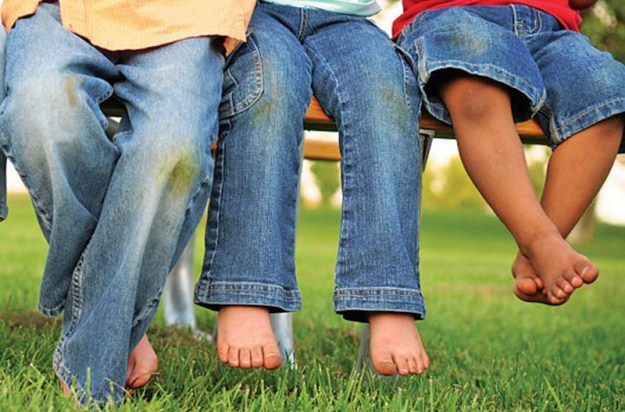 You can use sugar as a stain remover. It easily take out the grass, simply soak the stain, sprinkle with sugar and let stand for an hour. The result will surprise you.